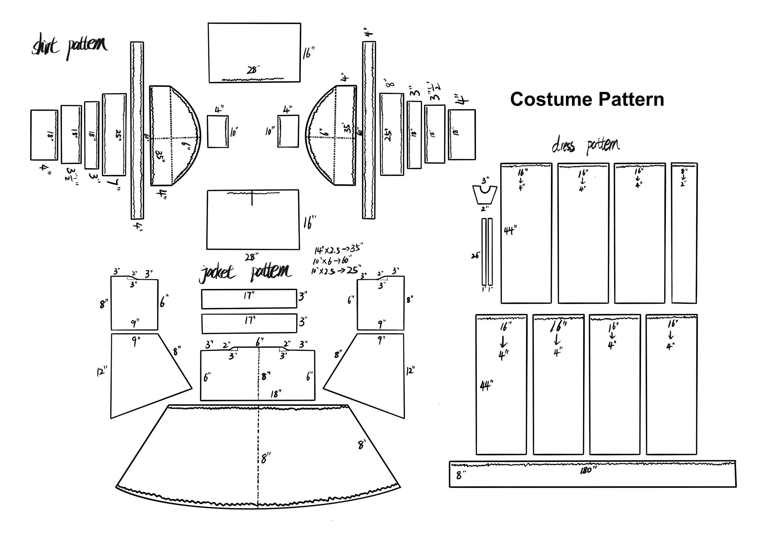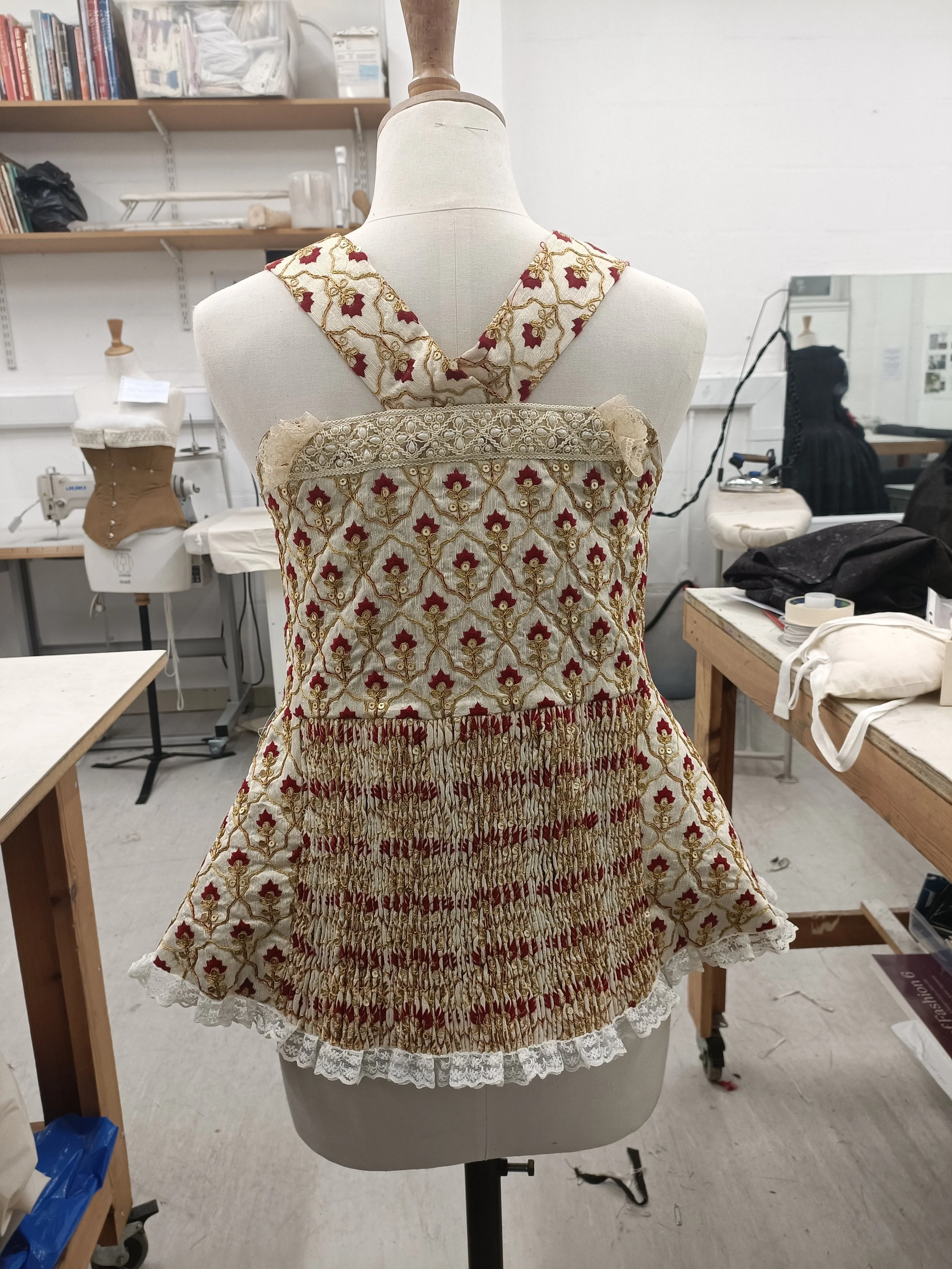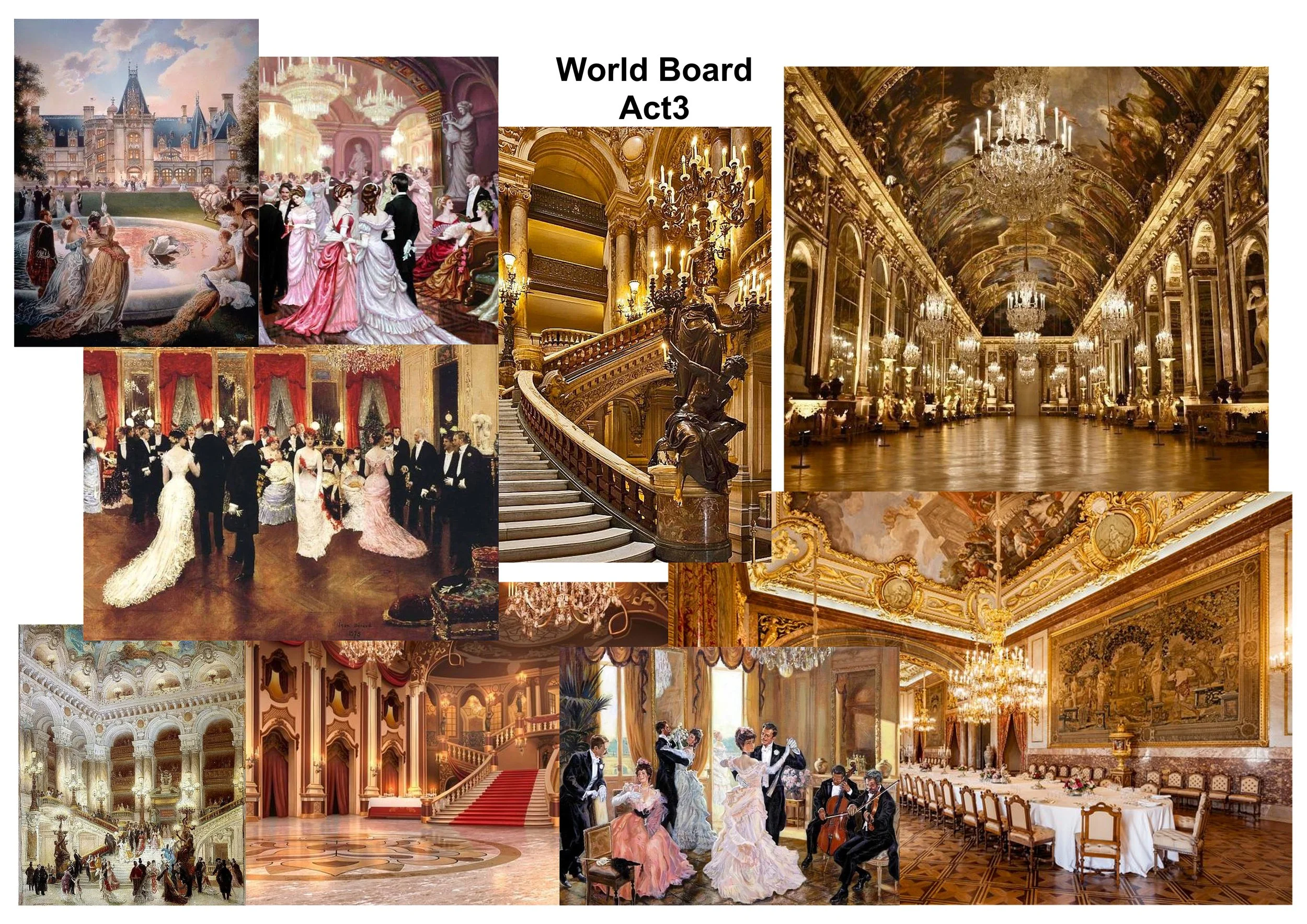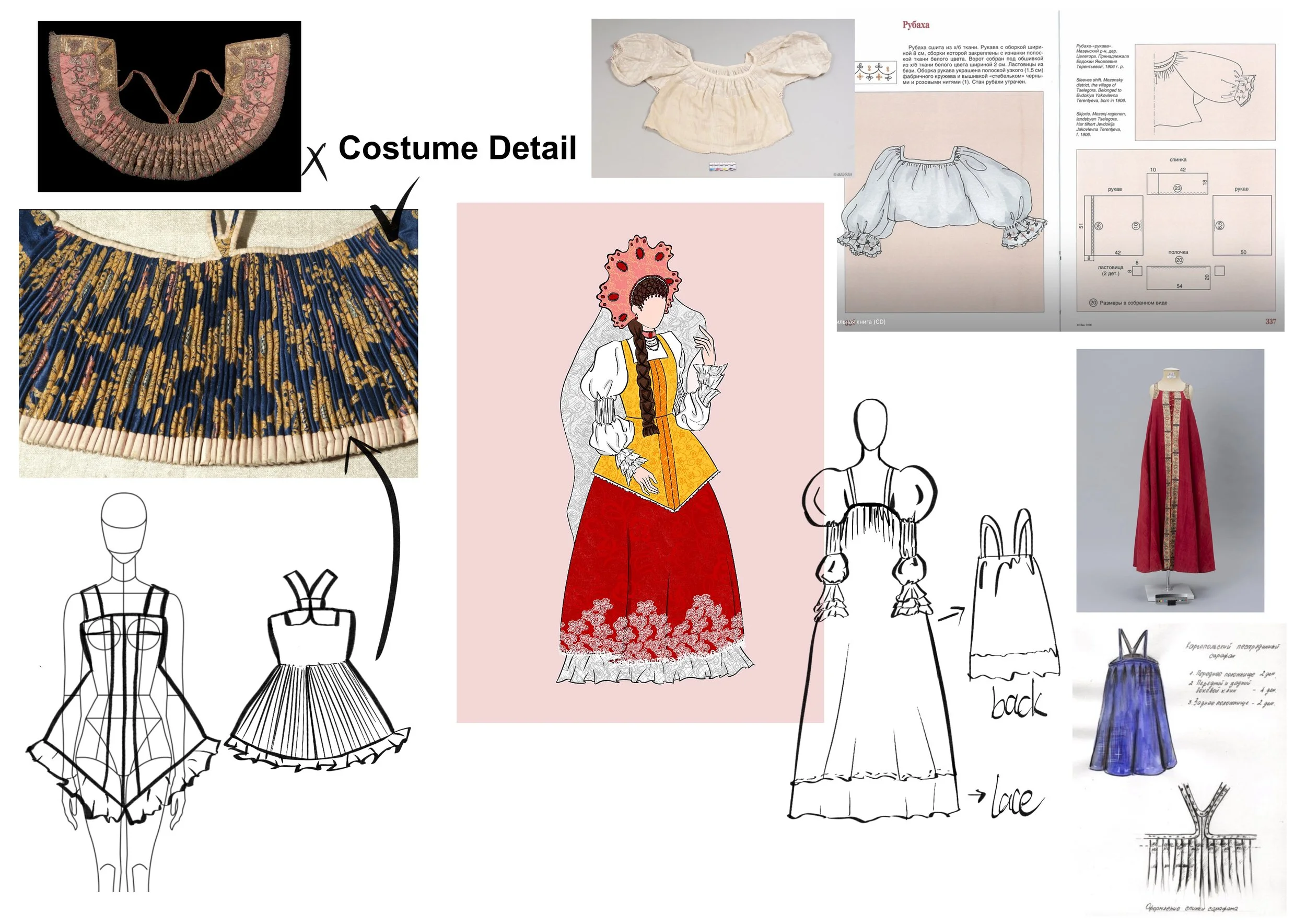 Eugene Onegin is set in 19th century Russia. My designs are based on this and are centred around traditional Russian clothing and 19th century fashion with some romantic elements. Onegin's designs are unique in that he is inspired by a puppet who is manipulated to keep reincarnating his experiences, where the end of the story is the beginning.