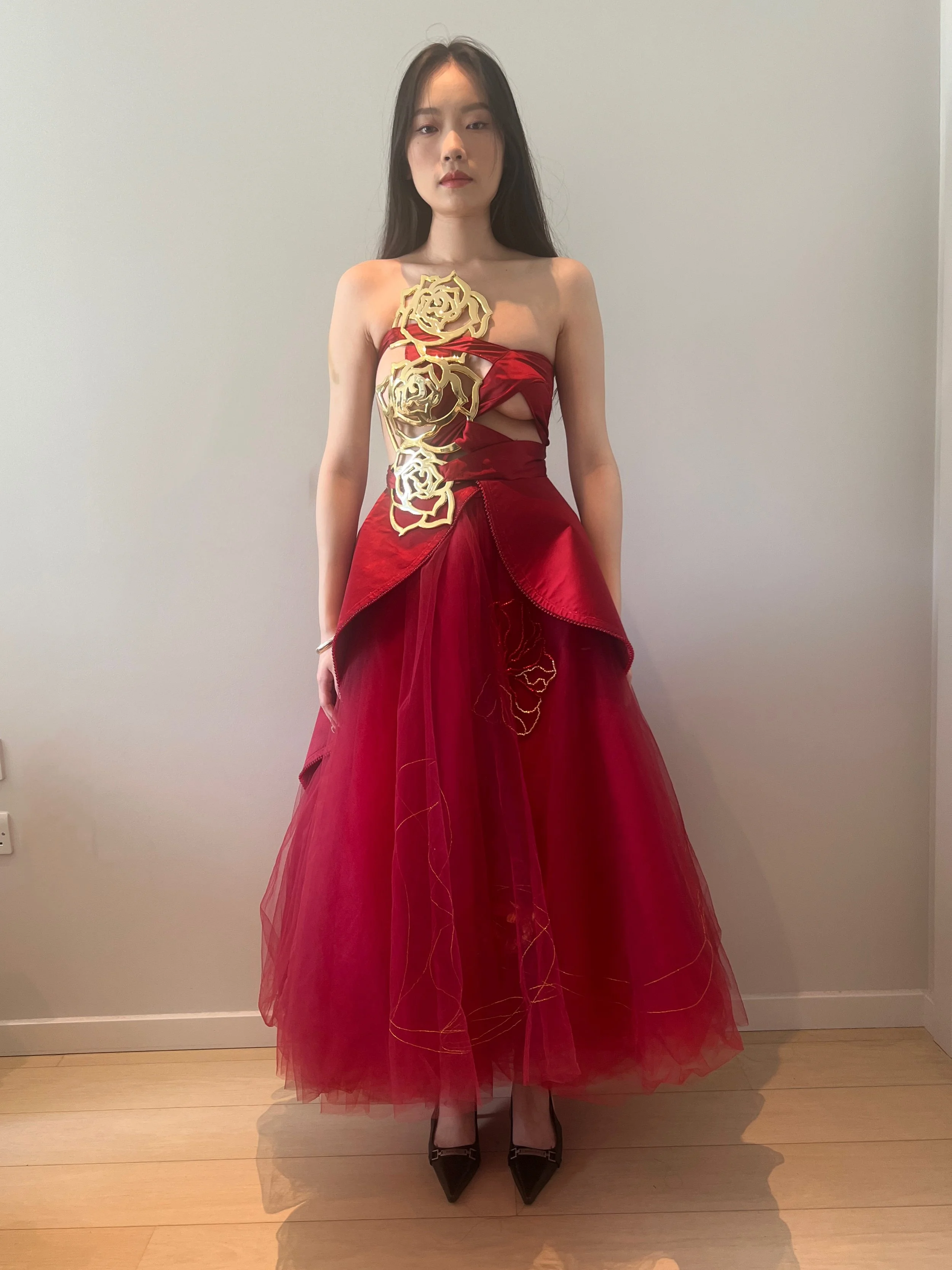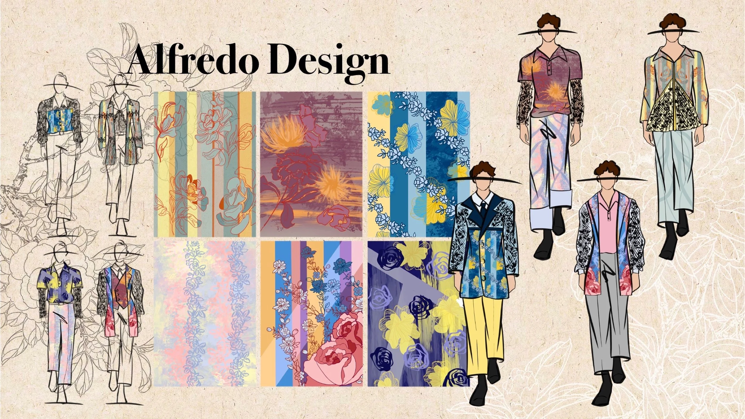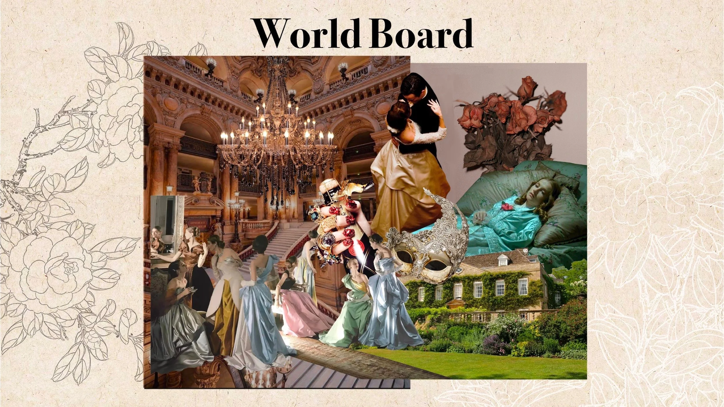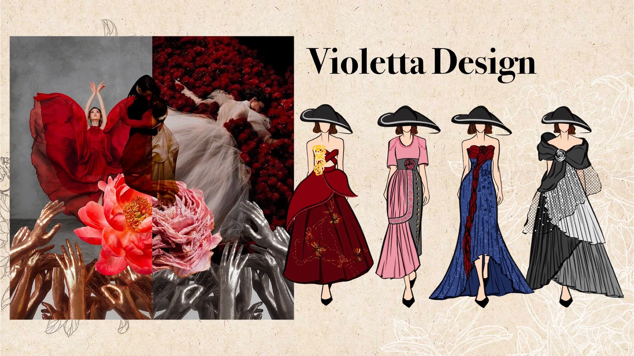 I designed 3 characters for La Traviata. Violetta was inspired by flowers and destruction; Alfredo was inspired by the Romantic period and designed some fabric patterns with the works of his contemporaries; and Douphol is predominantly noble in order to emphasise class. A series of designs were developed with the 1950's fashion in mind, and Violetta's Costume was made, incorporating 3D technology.