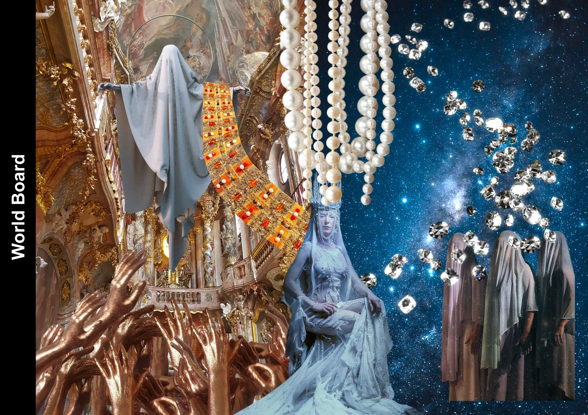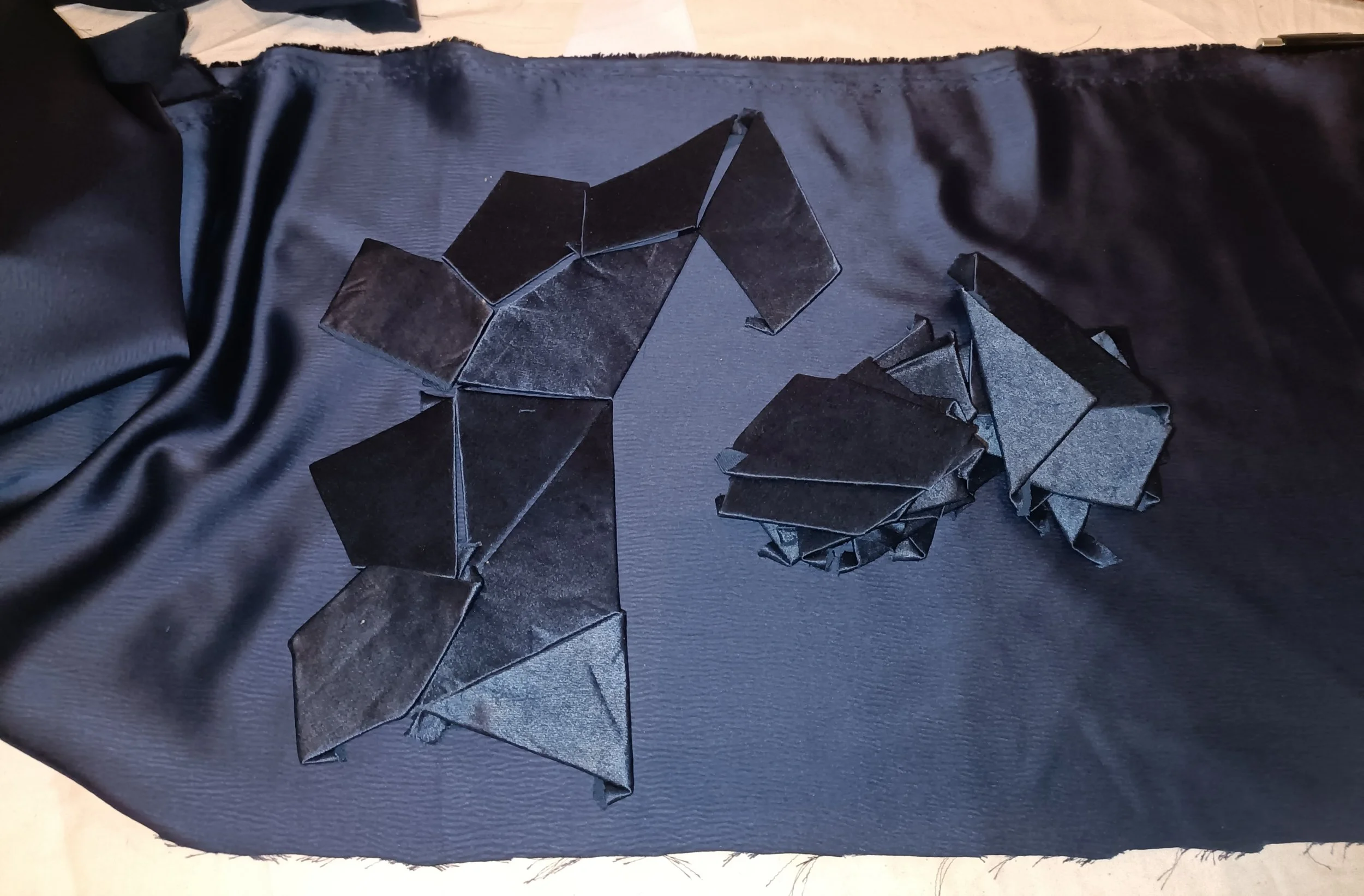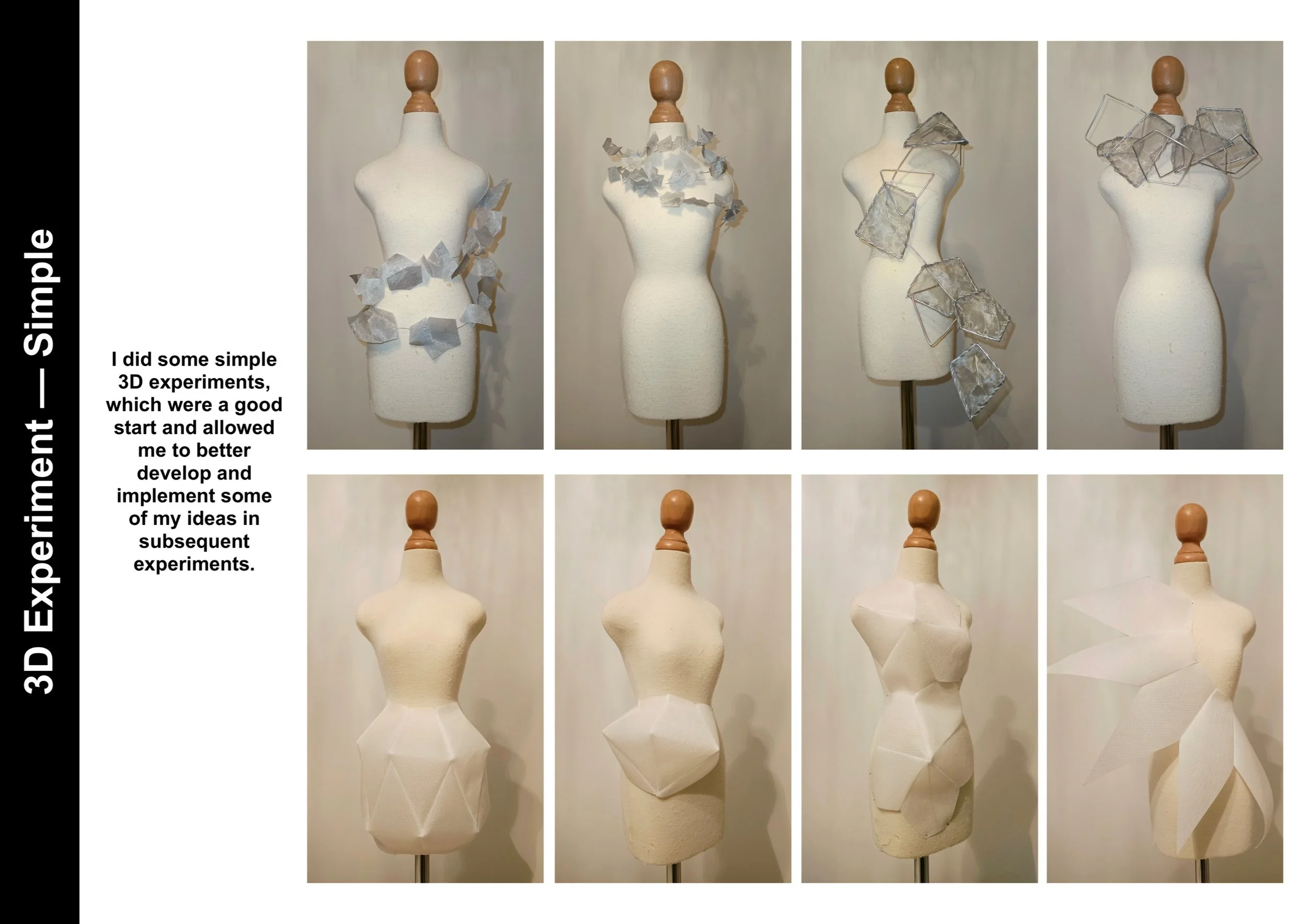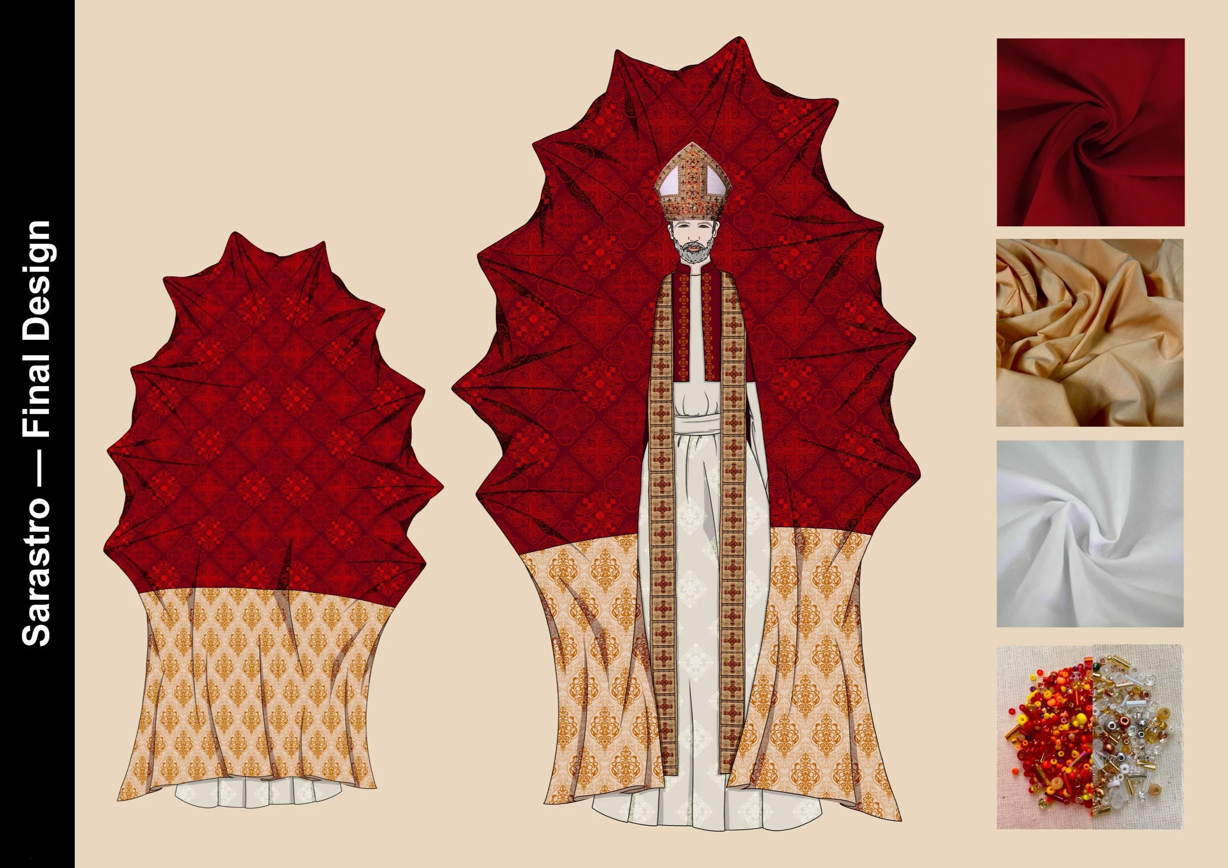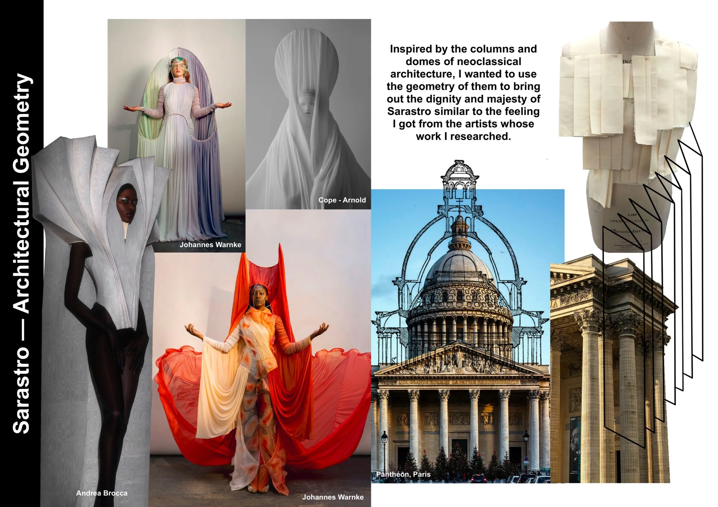 I designed the 5 characters in The Magic Flute. The Queen of the Night was inspired by diamonds illuminated by light in the darkness; Sarastro was inspired by Architectural Geometry; Tamino was Armour; and Papagene and Papagena were inspired by birds. Aseries of designs have been developed in conjunction with the Neoclassicism of fashion, and the production of The Queen of the Night's Costume.
