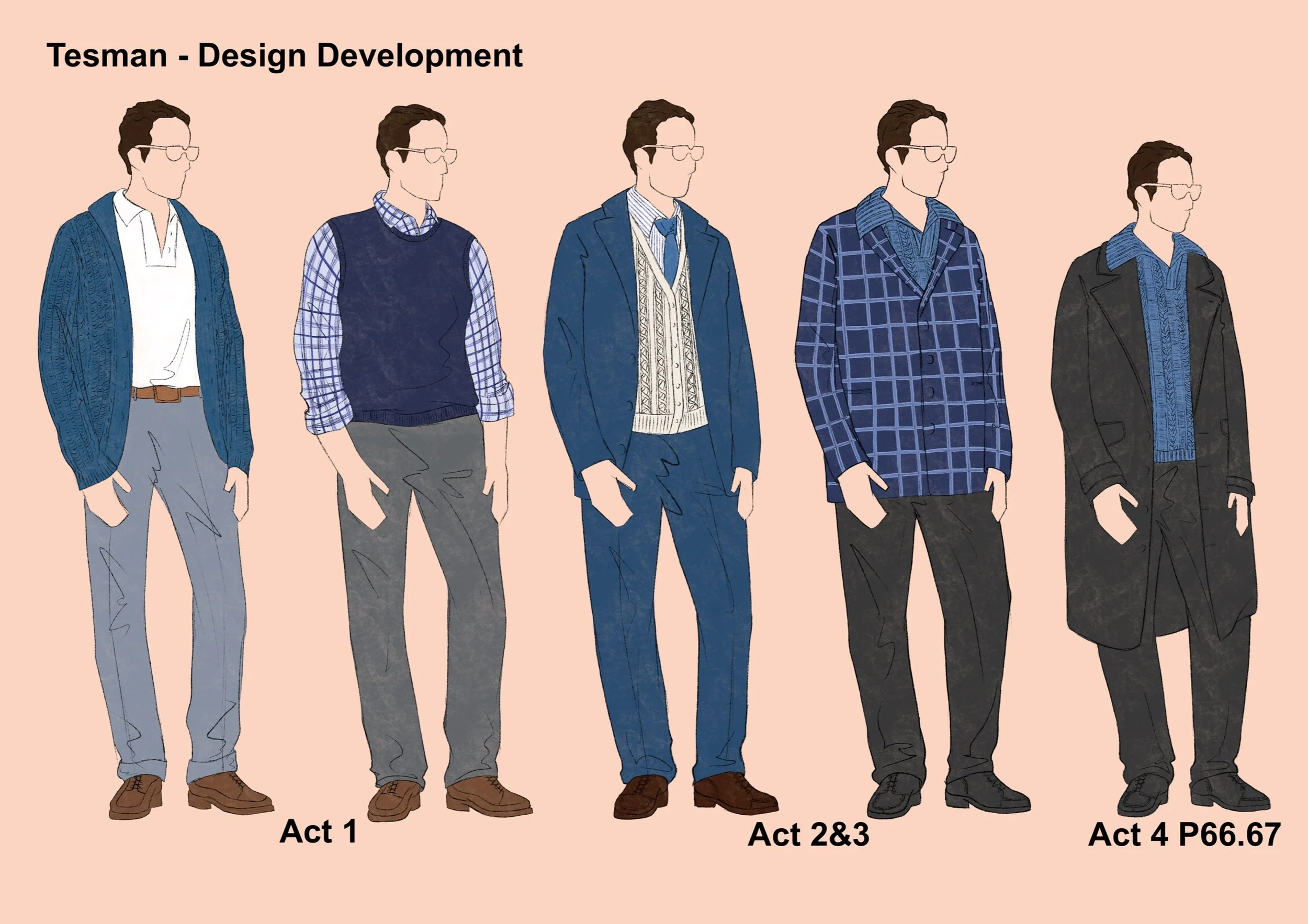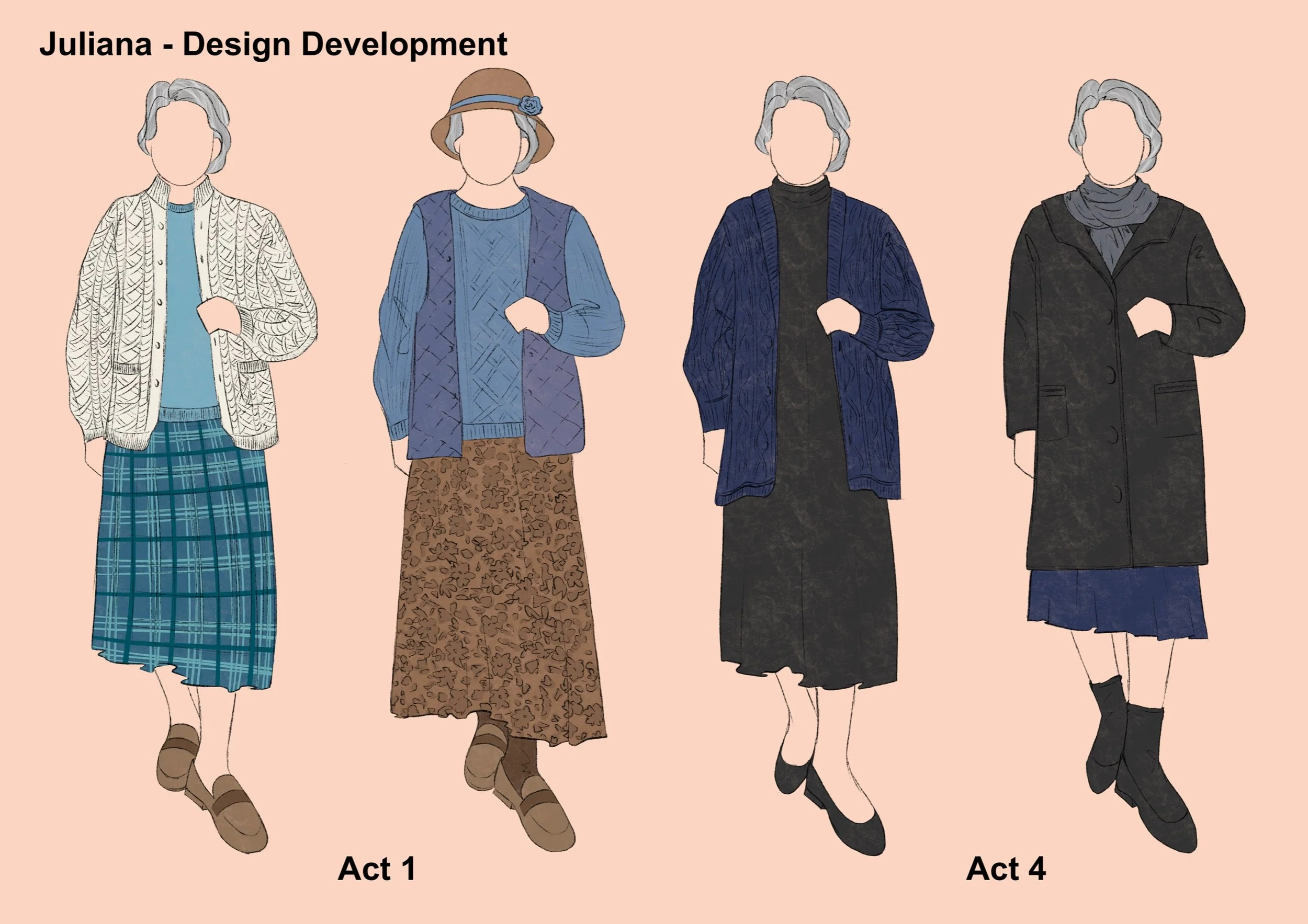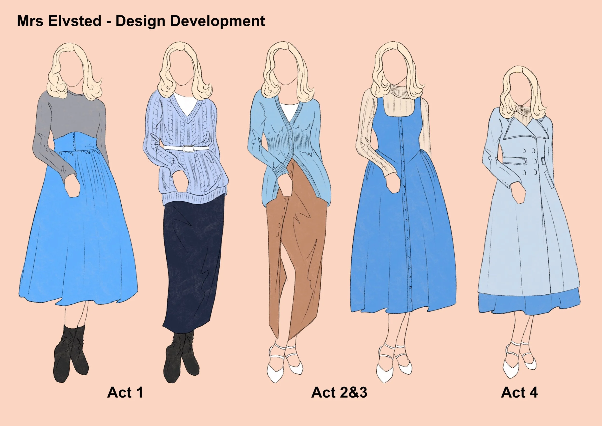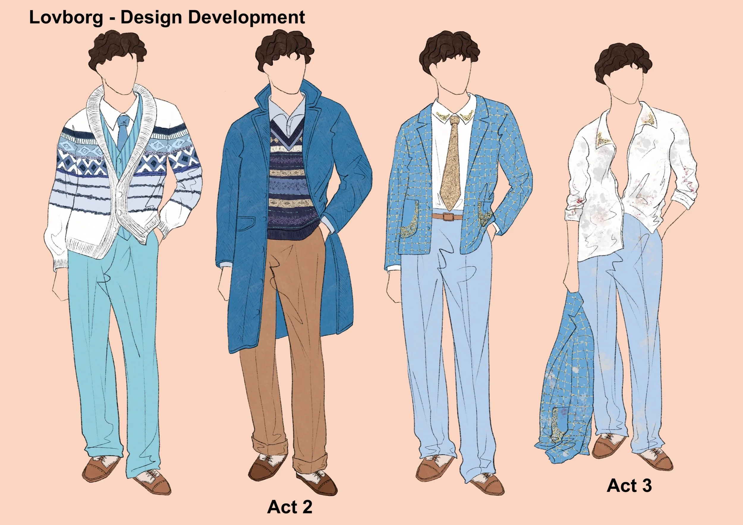 Hedda's period setting was changed to the current high society. Therefore the design is inspired by the current fashion and the social class of the character can be seen through the clothes. Hedda's character design is represented by the colour blue, which is calm, strong and sad, and is also used as a base.
